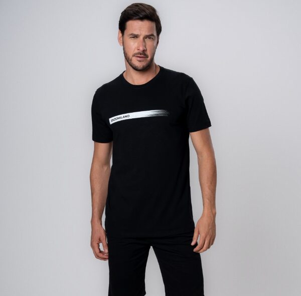A Camiseta Enzo Milano preta é confeccionada em 100% algodão, garantindo um toque macio e agradável à pele. Seu caimento moderno valoriza diferentes tipos de corpo, sendo perfeita para compor desde looks casuais até os mais urbanos. A estampa minimalista no peito traz sofisticação na medida certa, com o nome da marca em destaque.