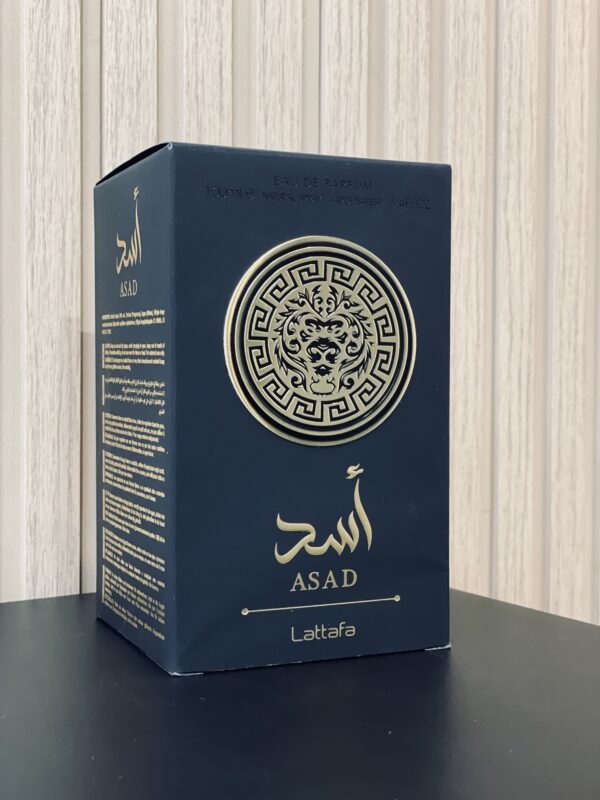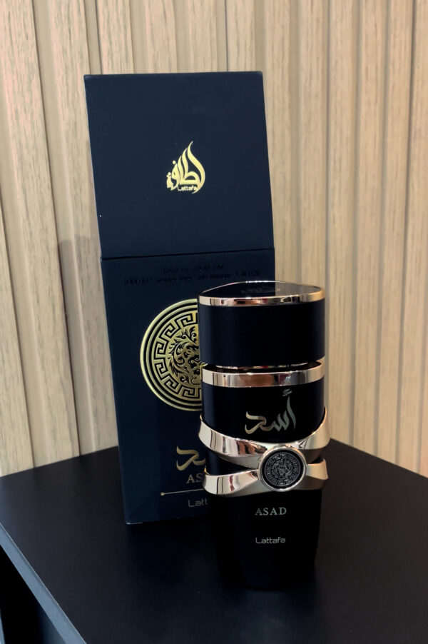 Asad de Lattafa Perfumes é um perfume Âmbar Masculino. Asad foi lançada em 2021. As notas de topo são: Pimenta Preta, Abacaxi e Tabaco. As notas de coração são: Patchouli, Café e Íris. As notas de fundo são: Baunilha, Âmbar, Benjoim, Madeira Seca e Ládano. Fixação de aproximadamente 8h na pele.