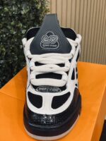 O tênis LV Skate traz um design inspirado nos anos 90 e foi visto pela primeira vez no desfile masculino Fall-Winter 2022 da Maison. Seu cabedal bicolor apresenta Flores do Monogram e combina malha tecnológica, couro de vitelo e camurça. Esse modelo se destaca pelo cano acolchoado, cadarços duplos tecnológicos e solado de borracha bicolor com Flores do Monogram.
